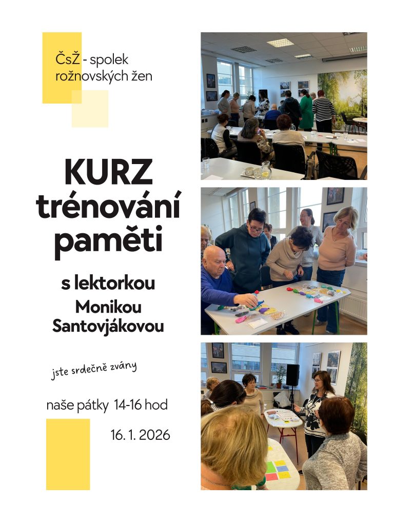 Díky velkému zájmu a skvělým ohlasům bude kurz pokračovat i v roce 2026. Těšíme se na další společné setkávání, nové techniky posilování paměti a příjemné chvíle, které Monika dokáže vždy krásně provázet.