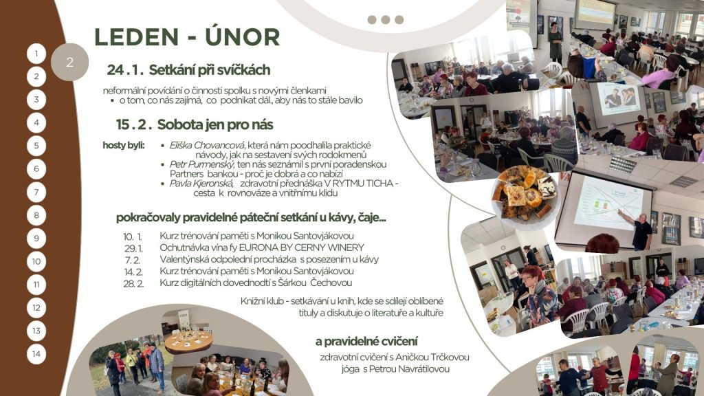 Vytvořily jsme pro vás přehlednou prezentaci, která zachycuje všechny významné události uplynulého roku. Najdete v ní fotografie, krátké ohlédnutí za jednotlivými akcemi i atmosféru, která nás provázela.