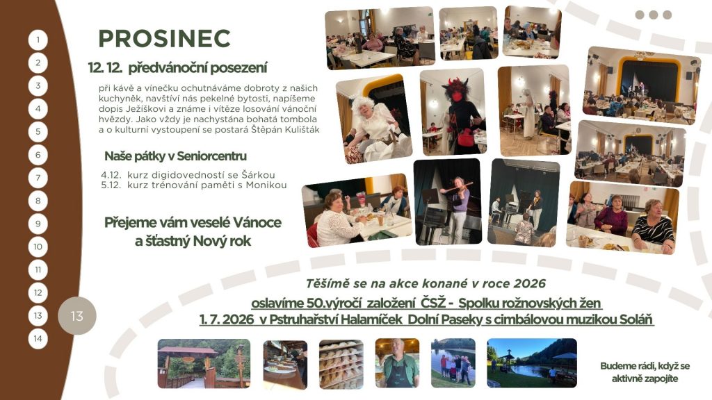 Děkujeme všem členkám i podporovatelům za aktivní účast, energii a dobrou náladu. Těšíme se na další společné zážitky v roce 2026, ve kterém oslavíme 50 let založení našeho spolku.